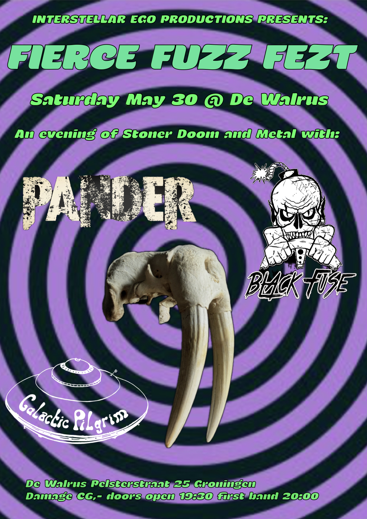 Op zaterdag 30 mei 2026 organiseert Galactic Pilgrim het eerste Fierce Fuzz Festival in de Walrus in Groningen. Vanaf 20u00 kan je geniet van drie, misschien wel vier bands. Super vet! Hieronder koop je je kaartjes.
